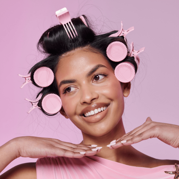 They heat up in just 60 seconds thanks to advanced heat tech that locks in the perfect temp for lasting lift. Each roller is wrapped in a luxe flocked finish that grips hair gently and securely. Cool-touch ends make handling a breeze while a built-in storage tray keeps clips neat and ready.