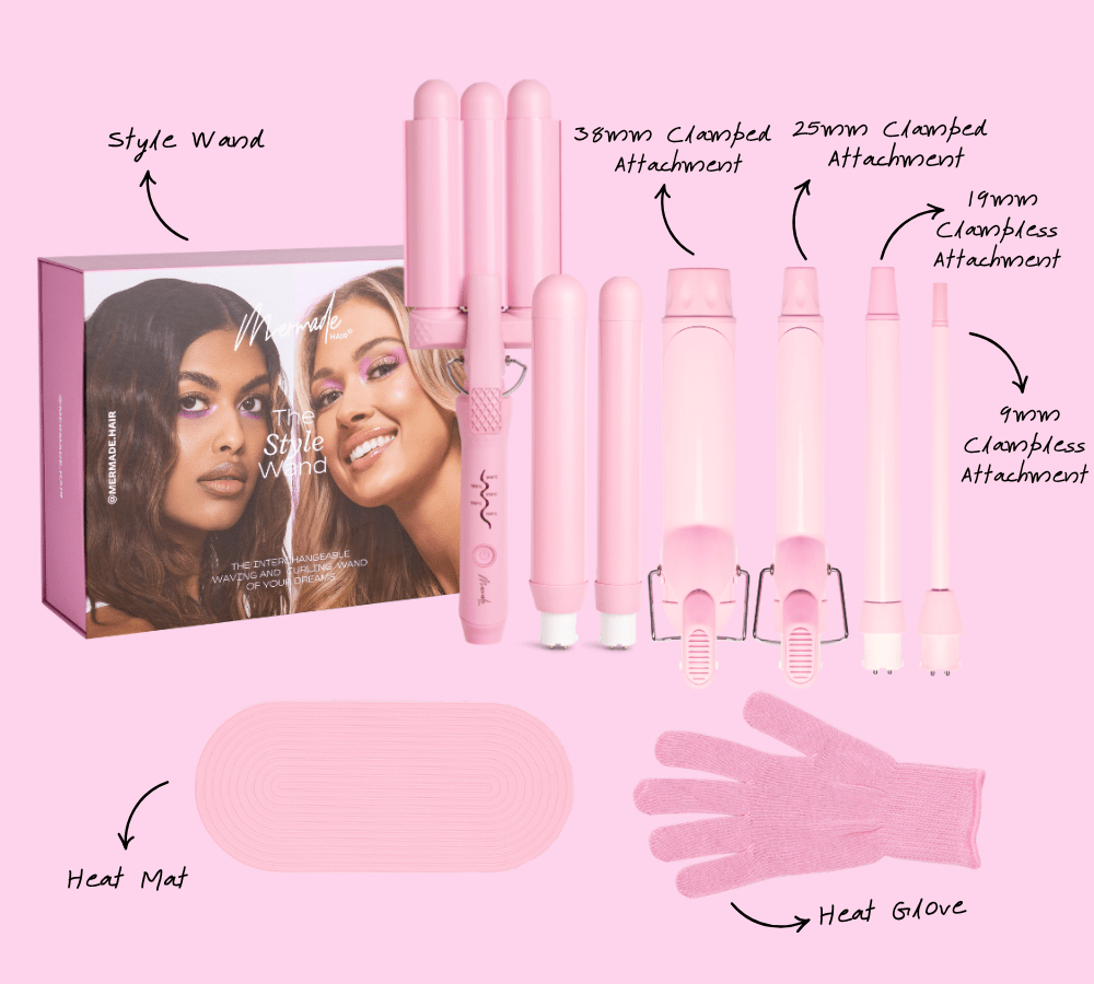 The Style Wand Mega Set by Mermade Hair™ has everything you need to create effortless curls, ringlets or beachy waves with one practical tool. The kit features the best selling Interchangeable Style Wand, which comes with 3 styling attachments plus 4 BONUS extra curling attachments to create a huge variety of looks!